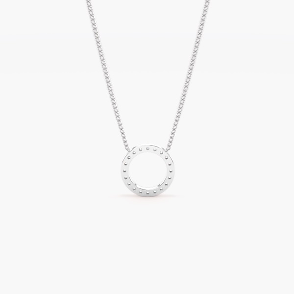 The delicate circle, adorned with sparkling diamonds, represents the endless cycle of life, love, and hope. This necklace is perfect for the woman who appreciates understated elegance and meaningful jewellery.