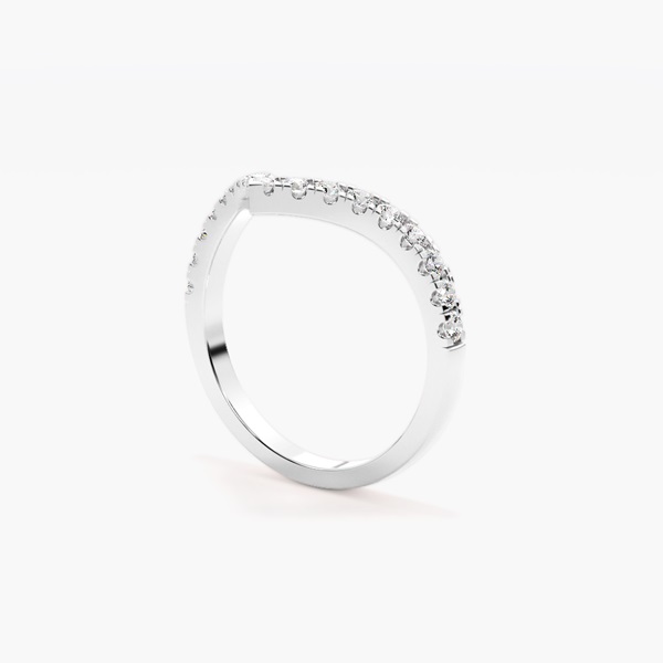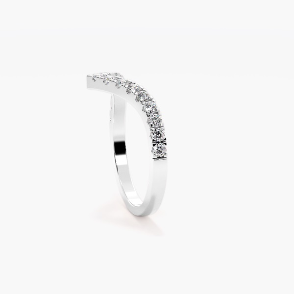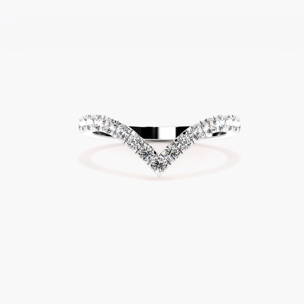 The Ava Wedding Band is a stunning V-shaped diamond band designed to complement and enhance your engagement ring with effortless elegance. Its sleek chevron curve, adorned with finely set diamonds, creates a luminous sparkle that symbolizes harmony and everlasting love. Handcrafted in 18K White, Yellow, or Rose Gold, or Platinum, the Ava Band offers both lab-grown and natural diamond options, making it the perfect choice for the eco-conscious bride. Timeless yet modern, the Ava V-Shaped Diamond Wedding Band blends sophistication, comfort, and radiant beauty—an exquisite finishing touch to your bridal set.