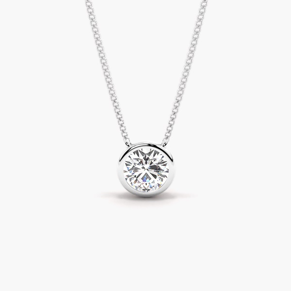 This elegant necklace features a bezel-set diamond, showcasing the stone’s brilliance and fire. The simple yet sophisticated design allows the diamond to take center stage, making it a timeless and versatile piece. The bezel setting provides a secure and protective hold for the diamond, ensuring its beauty for years to come.
