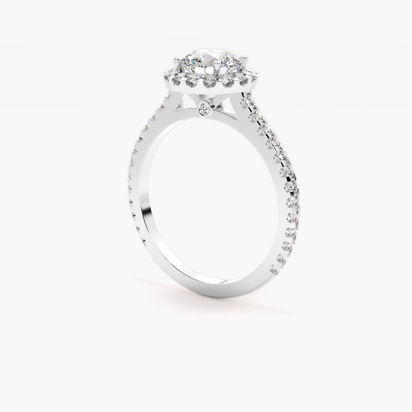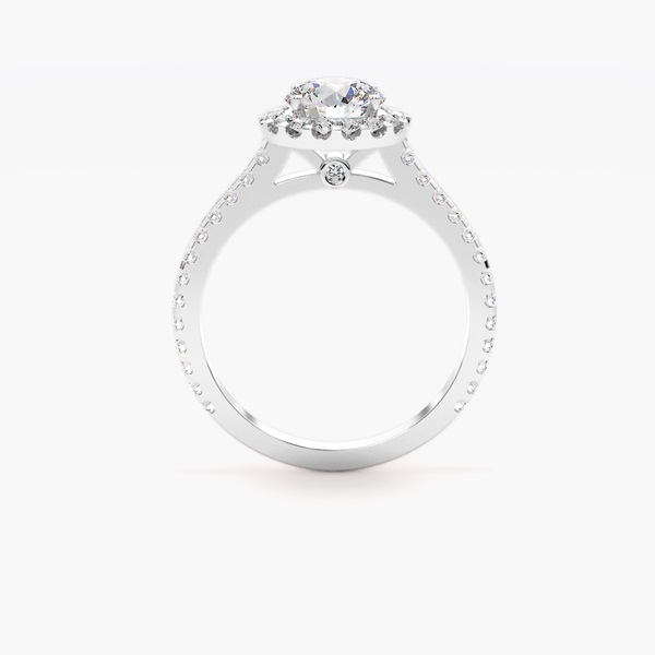 Behold the enchanting Azura diamond ring, a masterpiece of timeless beauty and dazzling sophistication. This exquisite ring features a brilliant diamond, gracefully framed by a single halo of perfectly matched smaller diamonds, maximizing its radiant sparkle. The delicate pave-set diamond band further enhances its allure, creating an unbroken shimmer of light. Ideal for engagements, special occasions, or as a cherished gift, the Azura ring embodies elegance and enduring love. Crafted with meticulous attention to detail, this classic halo ring promises to capture hearts and turn heads. Discover the captivating charm of Azura – where refined design meets unparalleled brilliance.