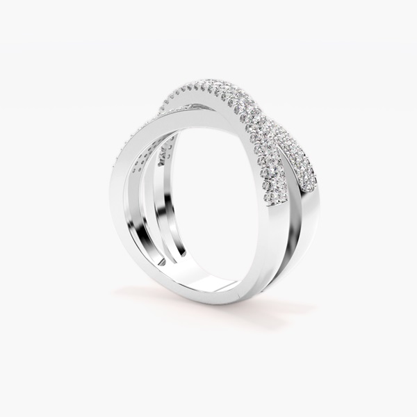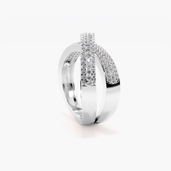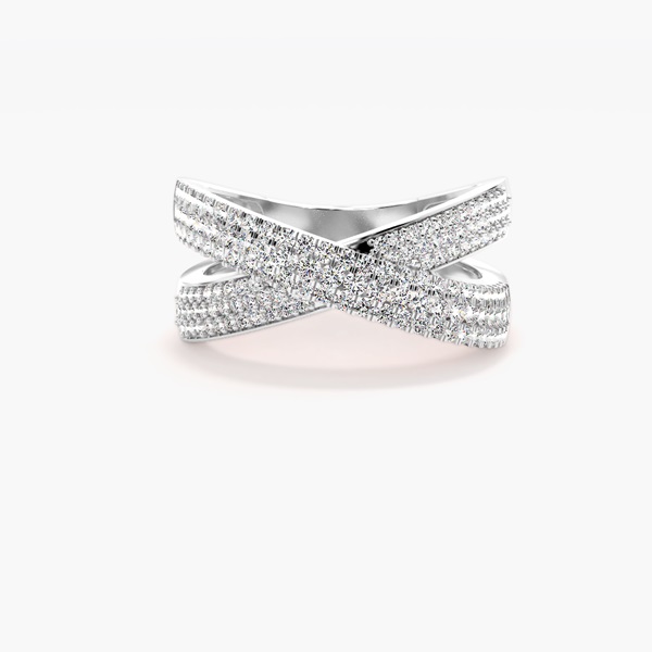Elevate your style with this exquisite diamond crossover ring, crafted in lustrous 18k gold or platinum. Featuring a modern criss-cross design, the band is meticulously set with multiple rows of brilliant round-cut diamonds that shimmer with every movement. This statement diamond ring blends timeless elegance with contemporary artistry, making it perfect for both everyday luxury and special occasions. A versatile piece, it symbolizes unity and strength while adding undeniable sparkle to your jewellery collection. Ideal as a gift or self-indulgence, this luxury diamond ring showcases exceptional craftsmanship and premium quality for those who appreciate true sophistication.