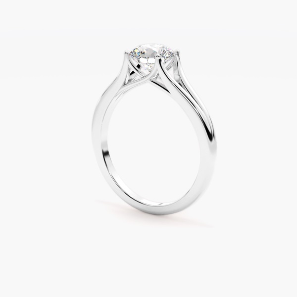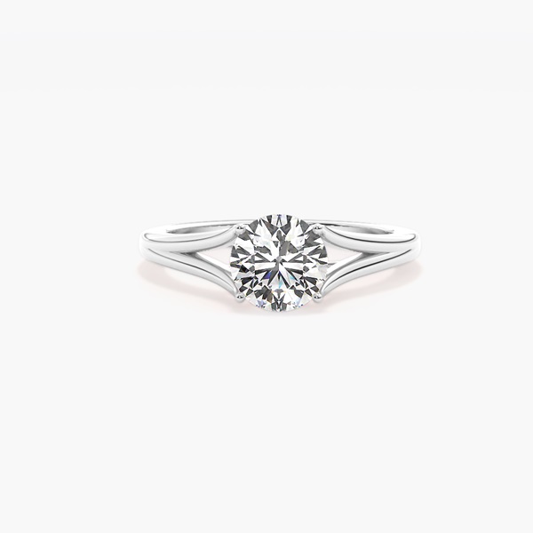 A dazzling diamond takes center stage in this elegant solitaire ring, showcased in a classic four-prong setting. The split shank design adds a touch of modern flair, creating a delicate and feminine look.