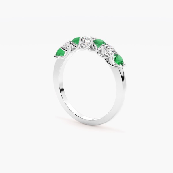 Featuring 4 round gemstones, you can choose from a variety of vibrant options like Sapphire, Ruby, or Emerald to add a personal touch of color. Accentuating the gemstones are 3 dazzling diamonds of carat 0.345 TDW, carefully placed to enhance the ring’s brilliance and elegance.