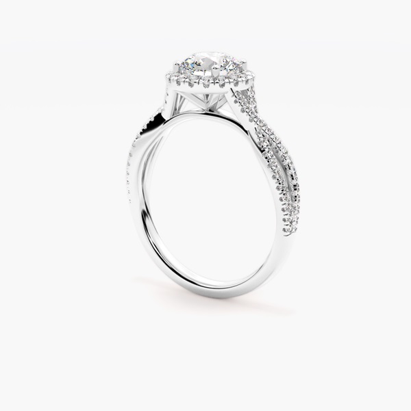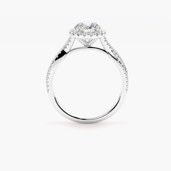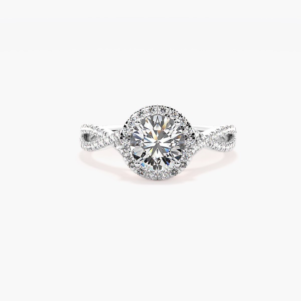 A stunning diamond halo engagement ring featuring a gorgeous center diamond, encircled by a dazzling halo of smaller diamonds that enhance brilliance and sparkle. The elegant twisted band adorned with shoulder stones adds a contemporary twist to this timeless design, creating a look that is both sophisticated and feminine. Handcrafted with meticulous attention to detail, this luxury engagement ring captures the essence of romance and elegance. Perfect for engagements, anniversaries, or life’s most memorable milestones, this exquisite halo diamond ring is a symbol of everlasting love, designed to be cherished for generations.
