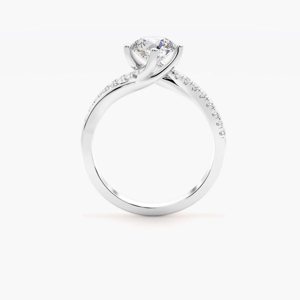 This exquisite diamond engagement ring features a brilliant center diamond, securely held in a classic four-prong setting that maximizes brilliance and fire. The elegant twist band is adorned with shimmering pavé-set diamonds, creating a graceful flow that enhances the ring’s sparkle from every angle. Designed with both timeless beauty and modern sophistication, this twisted diamond ring is a perfect symbol of everlasting love and commitment. Handcrafted with precision in your choice of precious metal, this luxury engagement ring offers a refined and feminine silhouette, making it ideal for engagements, anniversaries, or life’s most treasured milestones.