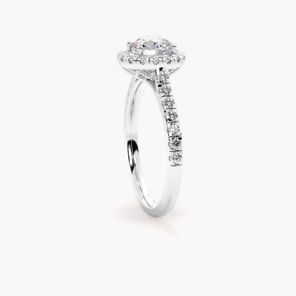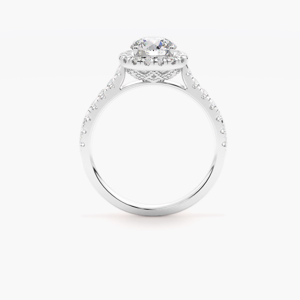 Celebrate everlasting love with this exquisite diamond halo engagement ring, a radiant symbol of devotion and timeless beauty. At its heart, a dazzling brilliant-cut diamond sparkles with captivating fire, enhanced by a luminous halo of smaller diamonds that amplifies its brilliance. The elegant pavé-set diamond band creates a seamless flow of light, adding sophistication and glamour from every angle. Expertly crafted in lustrous gold or platinum, this luxury engagement ring embodies both classic elegance and modern refinement. Perfect for a breathtaking proposal or a cherished anniversary, this halo diamond ring is designed to be treasured for a lifetime.