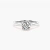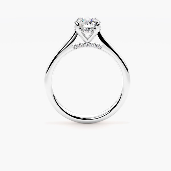Radiate brilliance with this truly captivating solitaire engagement ring, a harmonious blend of classic elegance and delightful surprise. At its heart, a magnificent brilliant-cut diamond reigns supreme, exquisitely cradled in a sleek four-prong setting designed to maximize its spectacular sparkle. Beneath this dazzling centerpiece lies a hidden halo of smaller, meticulously set diamonds, adding an unexpected cascade of light and enhancing the main stone’s allure from every angle. The lustrous gold or platinum band tapers gracefully, creating an ethereal profile that speaks volumes of refined luxury. This ring is a breathtaking choice for those who desire both timeless sophistication and a whisper of extraordinary detail.