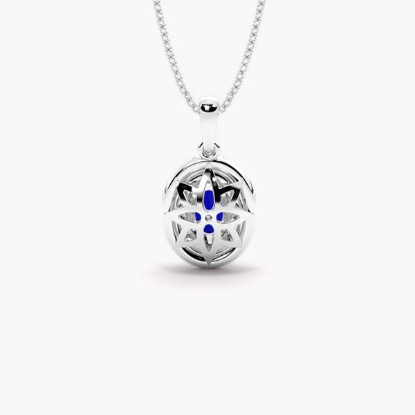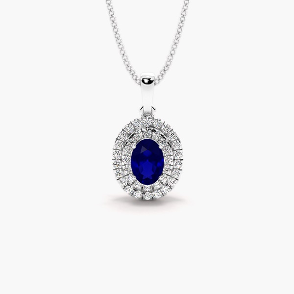 This captivating necklace showcases a mesmerizing oval-cut sapphire, symbolising loyalty, wisdom, and truth. The sapphire’s deep, rich blue hue is beautifully accentuated by two dazzling halos of brilliant diamonds, amplifying its elegance and adding a touch of royal sophistication. The Regalia necklace is a truly regal masterpiece, designed to captivate with its timeless beauty and radiant brilliance, making it an extraordinary symbol of strength and grace.