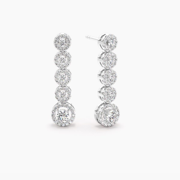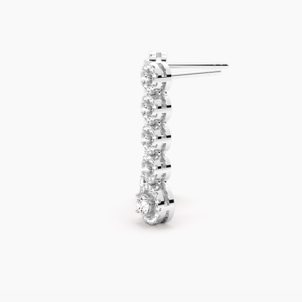 Capturing the magic of a starry night sky, the Stardust earrings are a celestial dream. A constellation of shimmering diamonds cascades downwards, each one a tiny star, illuminating the ear with a breathtaking display of light and sparkle. These earrings are a perfect choice for the woman who wants to add a touch of ethereal beauty to her look.