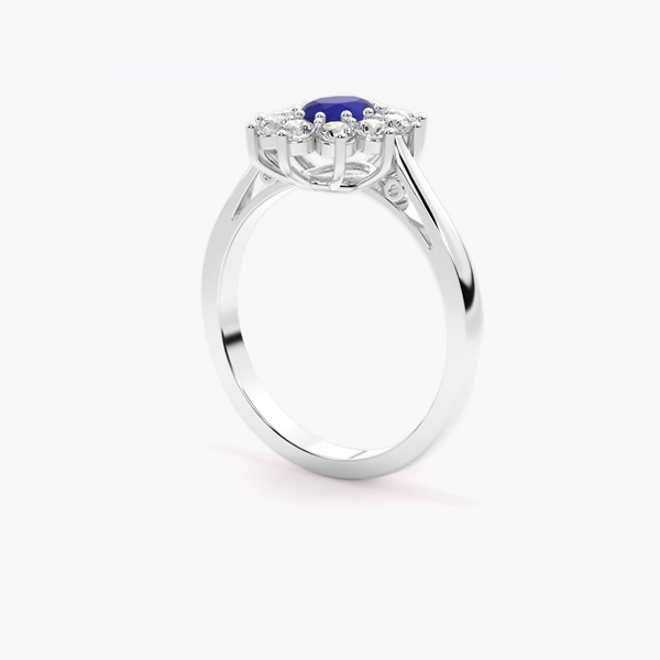 Celebrate timeless elegance with this stunning sapphire and diamond cluster ring. The vibrant oval-cut Sapphire takes centre stage, exuding rich blue hues that symbolise love and renewal. Surrounded by a halo of dazzling round diamonds, the design radiates brilliance and sophistication. Set on a sleek band, this masterpiece perfectly blends classic charm with modern refinement, making it a truly unforgettable statement of your love.